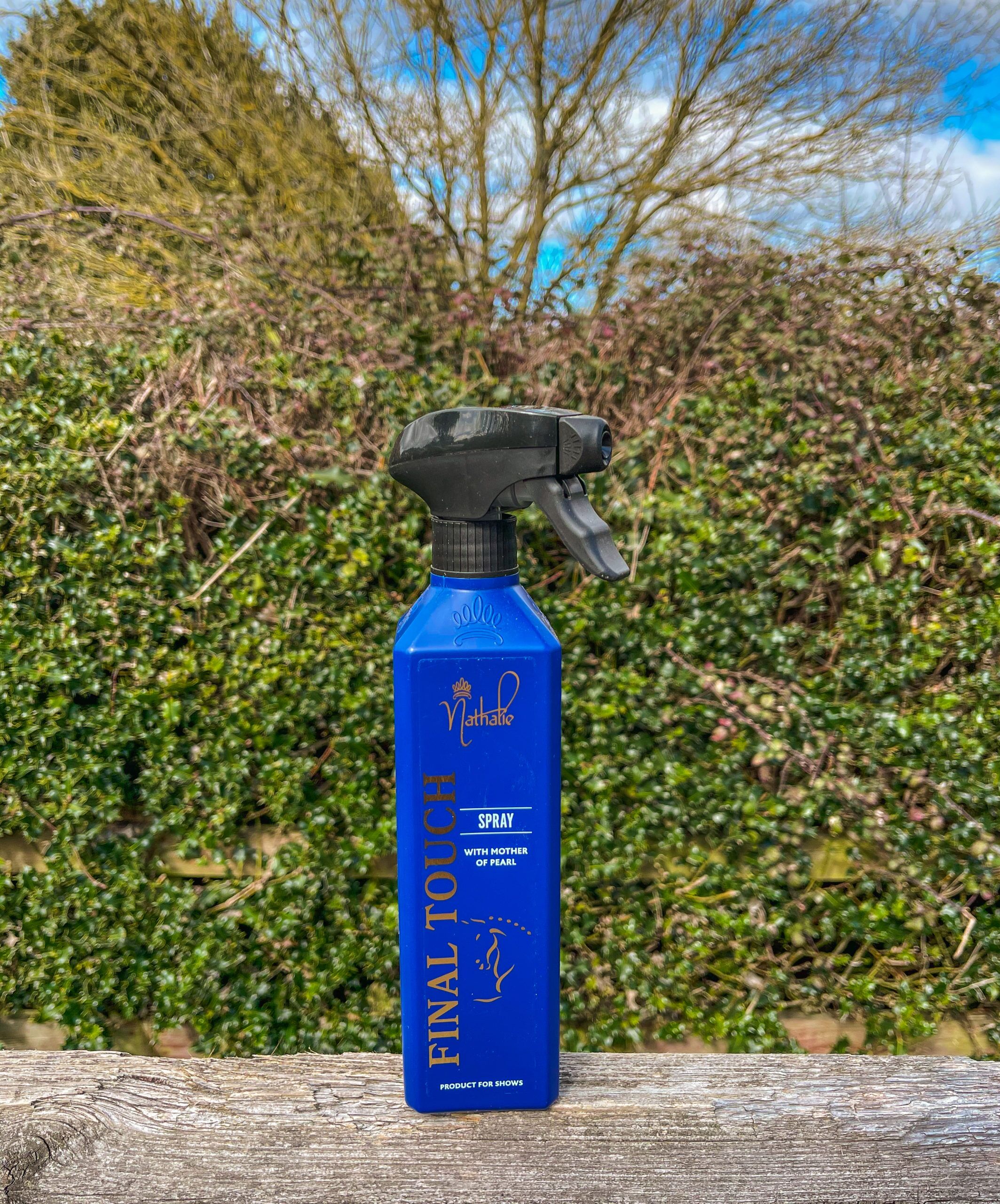 The Nathalie Horse Care Final Touch Spray will provide your horse’s coat, mane, and tail with an exceptional shine.