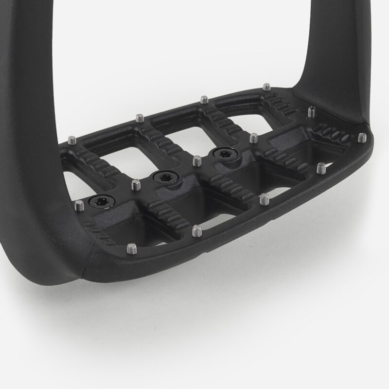 Concave, grippy footplate with strong tread — secure, balanced footing even in wet/dirty conditions.